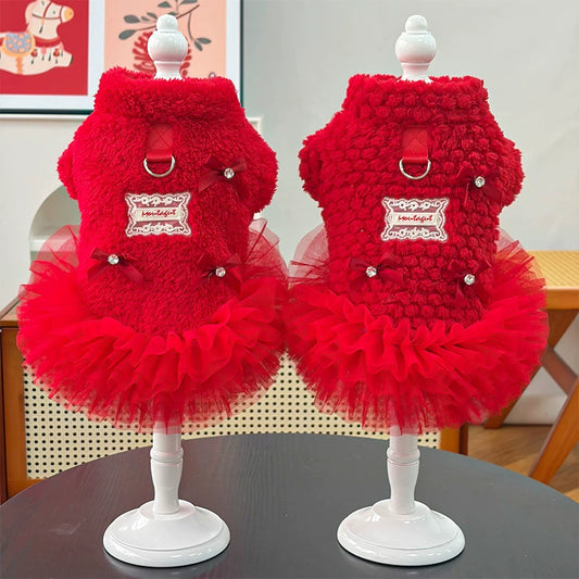 New Year and Autumn Winter Fleece-Peaked Pet Princess Dress