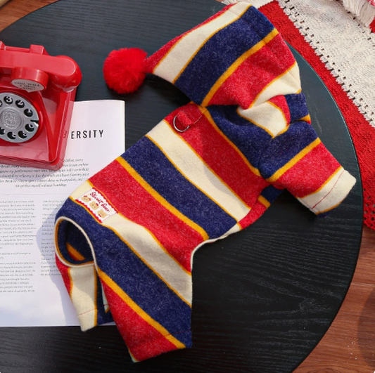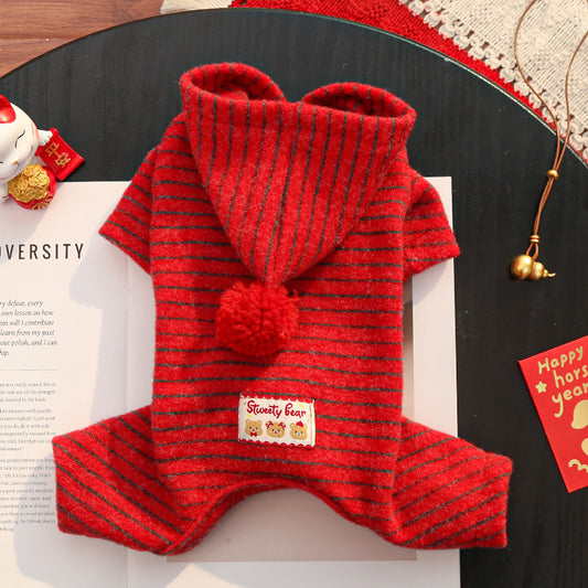 Dog clothing - festive red striped cashmere pet four-legged coat