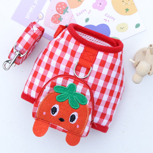 Pet spring summer autumn winter cartoon go out breathable leash vest chest strap dog cat clothing supplies