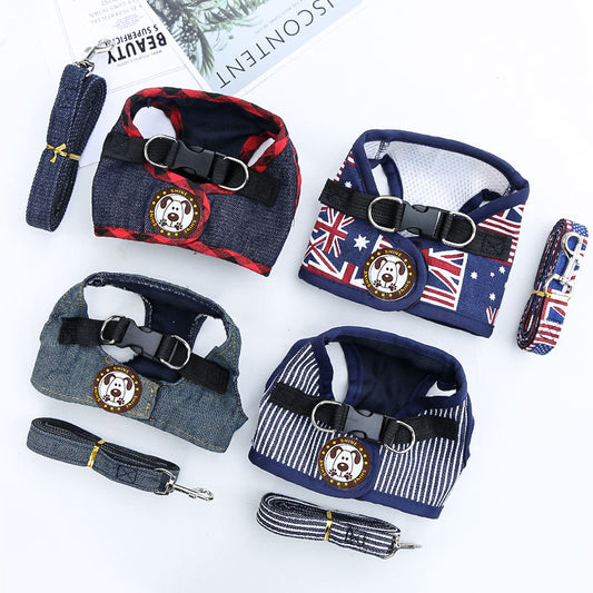 Spring/summer dog leash Cowboy outdoor chest harness Pet dog leash supplies Teddy cat available