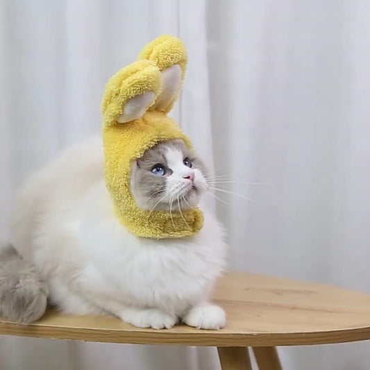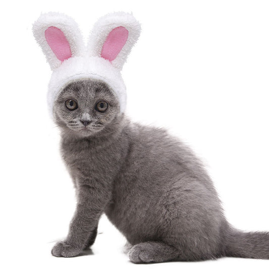 Cute warm soft cotton wool small medium-sized dog dog cat white rabbit hat set supplies