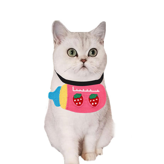 Spring and Autumn pet saliva towel elastic tie decorative dog and cat three-dimensional knitting cute cartoon embroidery saliva towel